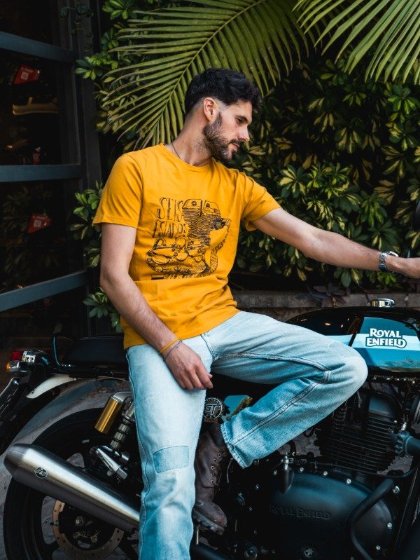Remera mangas cortas, cuello redondo con estampa en serigrafía.